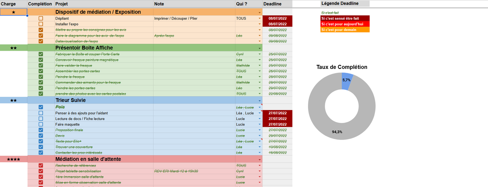 Je mets notamment en place des systèmes permettant de structurer et de rendre le travail collectif plus lisible et plus efficace : création de tableaux dynamiques pour suivre l’avancement des tâches, automatisation de processus répétitifs, ou encore segmentation claire des étapes d’un projet afin d’optimiser la participation de chaque membre de l’équipe.